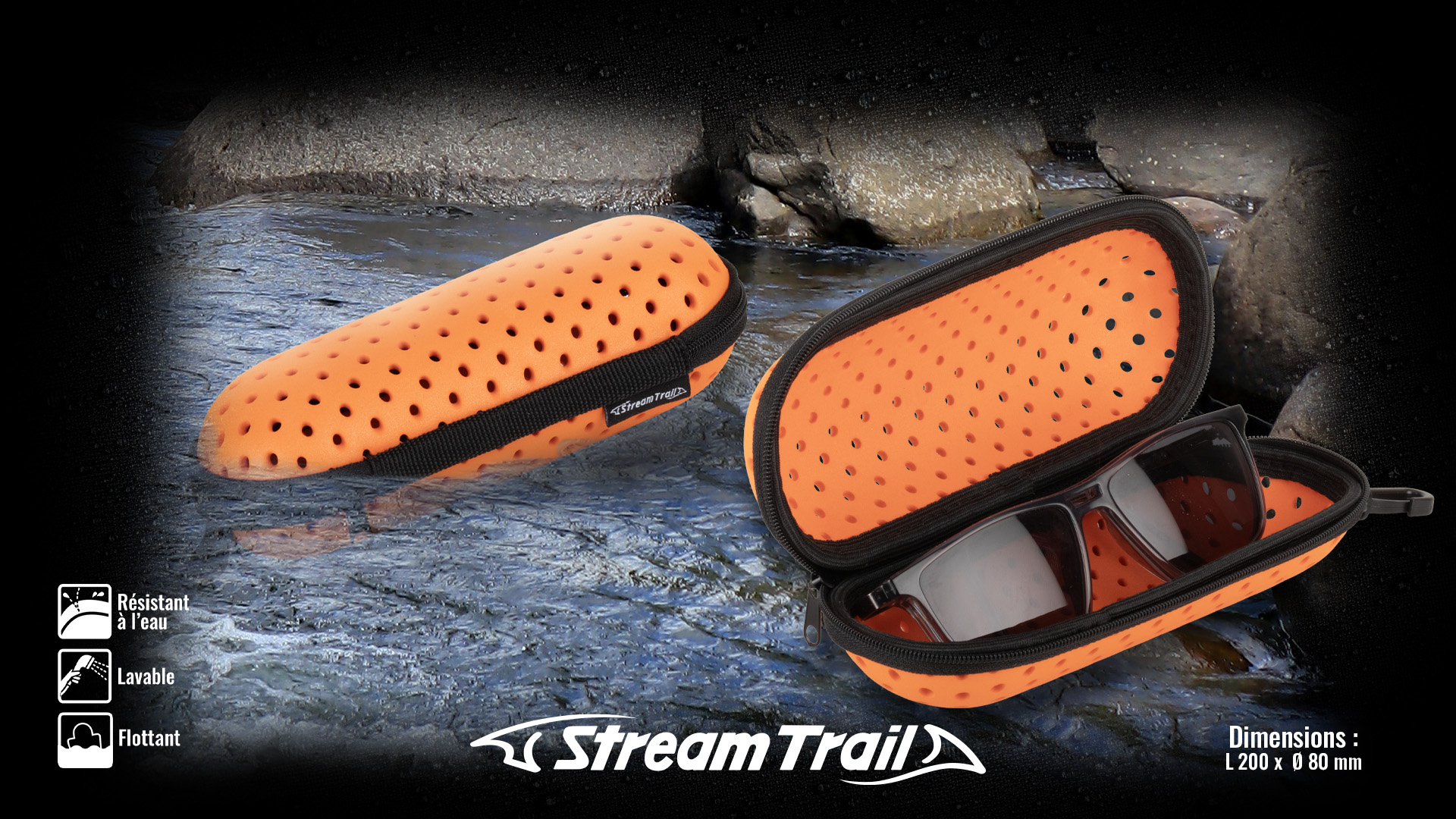 Un étui à lunettes flottant, élégant et protecteur, conçu pour garder vos lunettes en sécurité et toujours à portée de main, sur terre comme dans l’eau.
