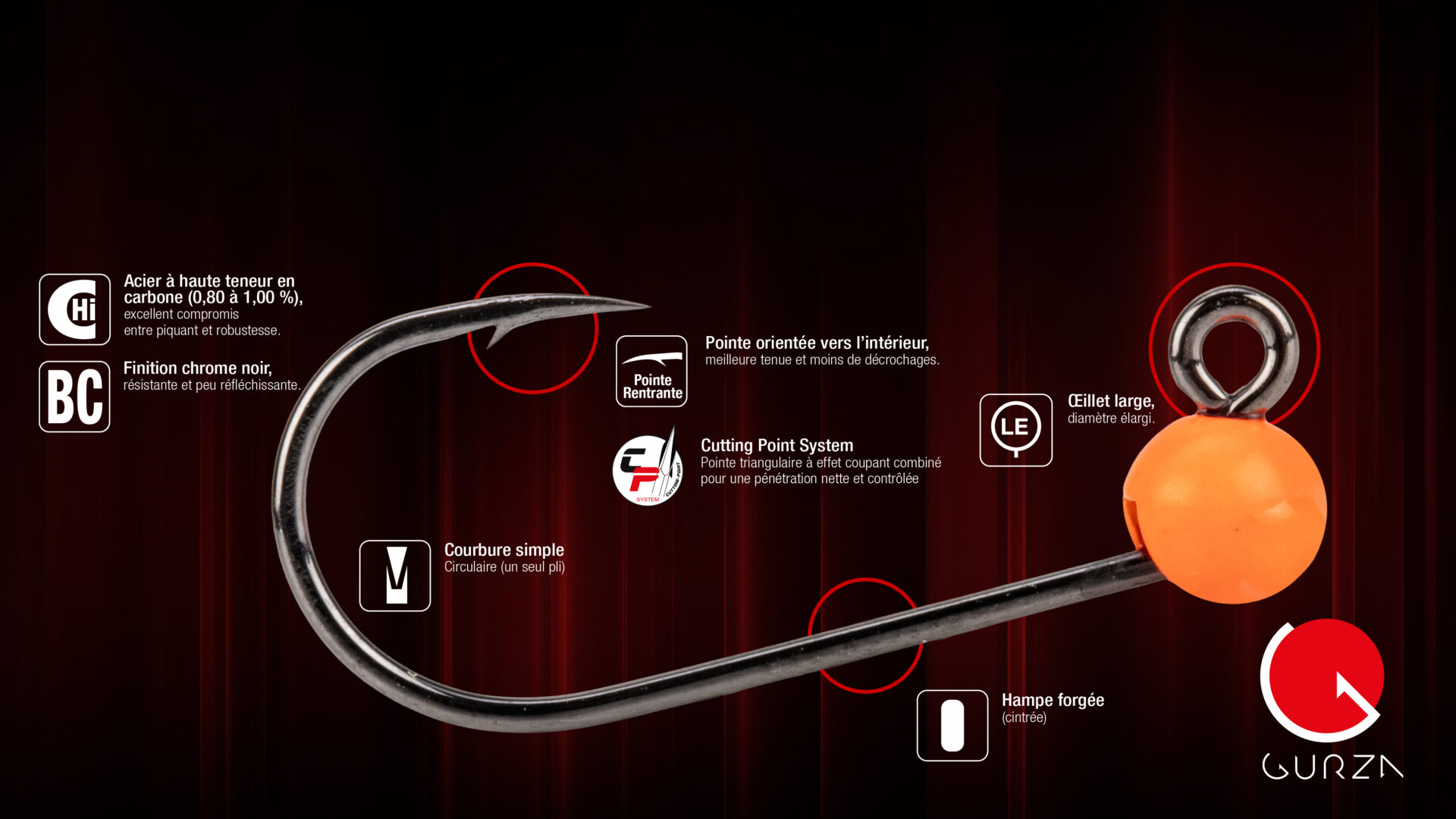 Une tête plombée Bullet Offset Gurza, précise et polyvalente, conçue pour optimiser l’armement de vos leurres souples tout en assurant une nage naturelle et efficace pour cibler les carnassiers.